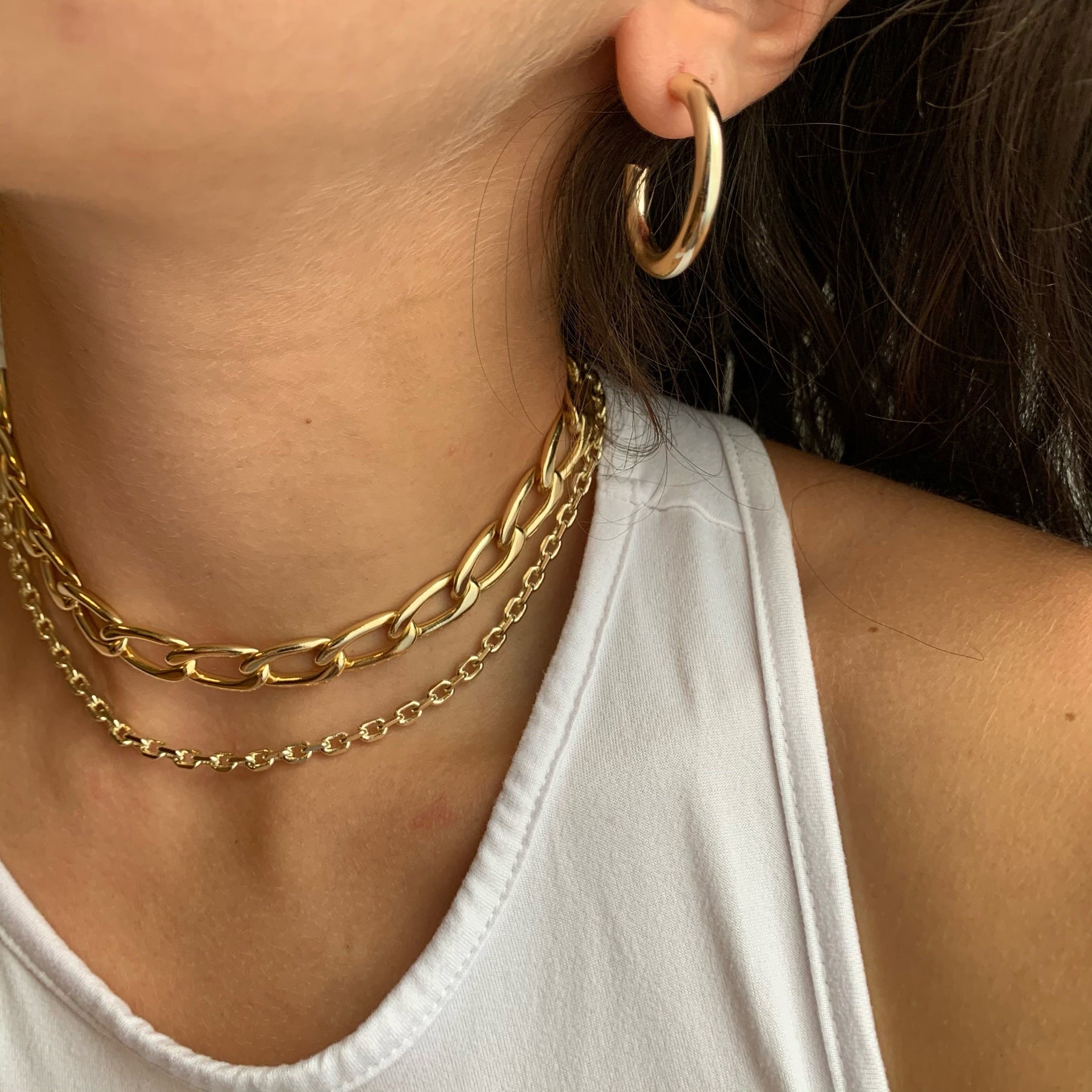 All of Manhattan will be talking about these stunning earrings! Our Manhattan earrings are the perfect thick gold hoops every earring lover needs in their collection. Finish off the look by pairing them with our Ice Ice baby Earrings.